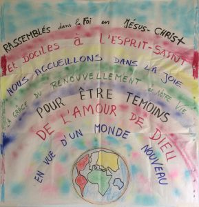Nous avons bien commencé ! Du 2 au 4 juillet nous étions dans la joie ! Oui, nous avons commencé notre renouvellement par la découverte d’un outil secret qui « risque » de nous rendre heureux. Voulez-vous le connaître ? Mais c’est très secret ! D’accord…, le bonheur est contagieux en fait : il s’agit du discernement appréciatif. C’est le père Yago ABELEDO (Missionnaire d’Afrique), qui nous a entrainés pendant 3 jours à cette nouvelle manière de regarder notre réalité. Nous avons fait cet acte de foi inspirés aussi par l’encyclique Evangelii Gaudium (EG, La joie de l’évangile) du pape François : nous voulons permettre à la joie de notre foi de s’éveiller en nous pour renouveler le don de notre vie, ce don de l’amour de Dieu !