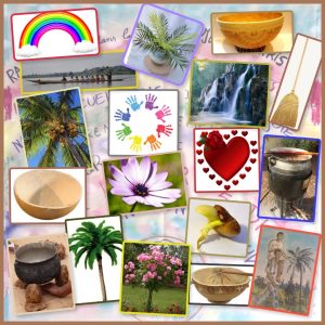 Ensuite nous sommes invités à découvrir à quoi ressemblons-nous quand nous sommes au meilleur de nous-mêmes. Il s’agit ici d’une réalité encore inexistante projetée dans le futur qui s’ouvrira pour nous avec la grâce de Dieu. Qui suis-je actuellement et quel est mon « moi » idéal ? Après, on rêve un peu sur ce qui se réaliserait pour nous si nous accueillons tous les dons que Dieu nous donne, à travers les différentes expériences de notre vie et si nous les utilisons au maximum, tout en restant fidèles aux dons et à la grâce reçus de Dieu ! Chacun de nous a choisi ainsi un symbole de son rêve : une barque, une calebasse, une graine d’haricot, l’arc-en-ciel, un cœur, une marmite, etc.
